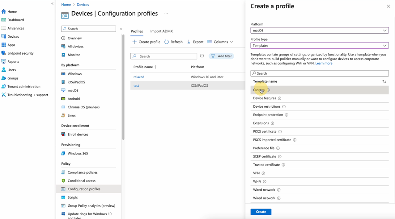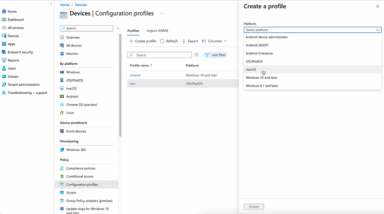 Click on Create profile and select macOS as the platform.