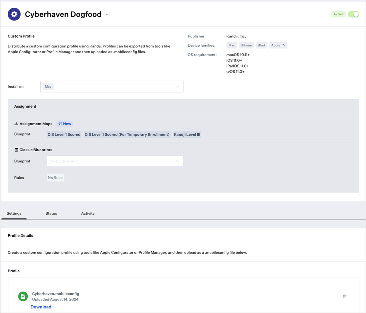 Ensure that the devices where you want to install the Cyberhaven custom app and custom profile are enrolled in the blueprints. This guarantees the seamless installation of the Cyberhaven Sensor on those devices, applying the correct settings automatically.