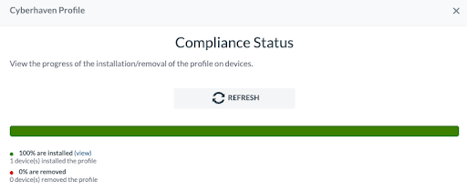 - Confirm the Compliance Status shows successful installation of the Cyberhaven profile before proceeding.