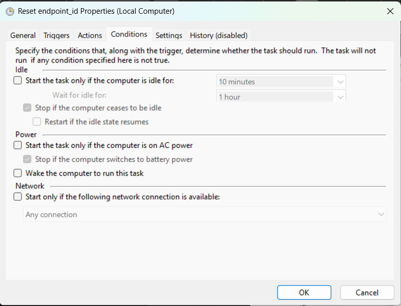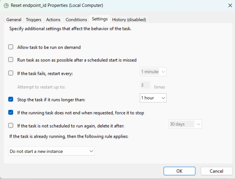 To automate the process of running the reset script, configure Task Scheduler on the master image.