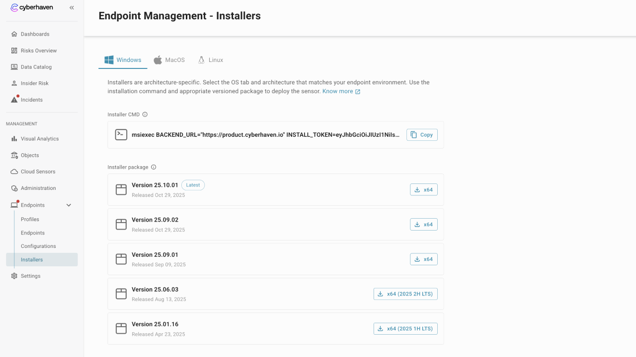 Keep installers up to date by returning to this page whenever Cyberhaven publishes a new release.